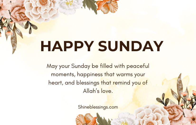 - May your Sunday be filled with peaceful moments, happiness that warms your heart, and blessings that remind you of Allah’s love.